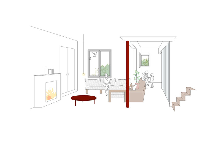 Deze indeling zorgt voor een vloeiende circulatie door de woning, wat bijdraagt aan een gevoel van rust. Daarnaast worden er open zichten naar de tuin gecreëerd, zodat het zonlicht langs alle gevels naar binnen kan stromen.
